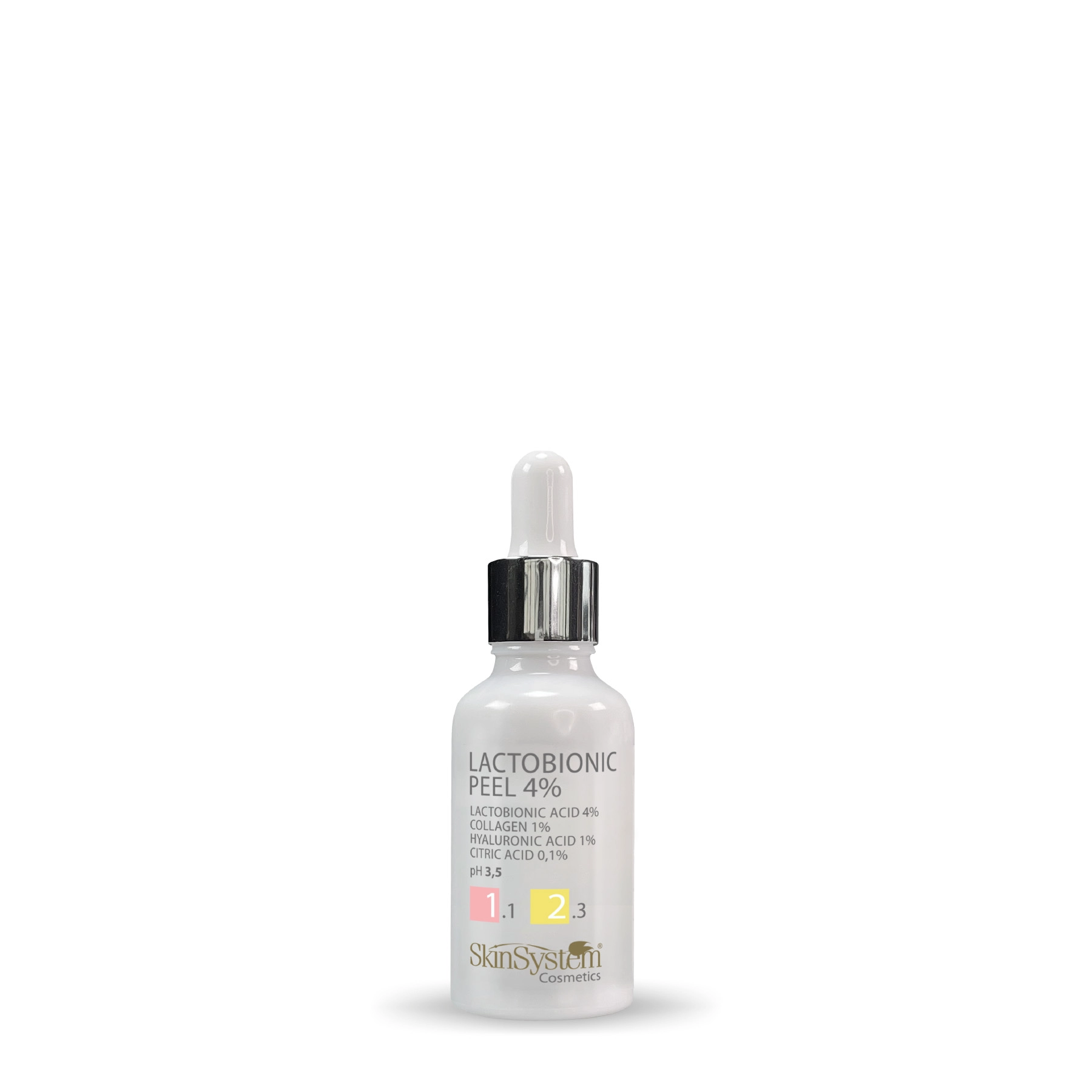 Es umfasst die Verwendung der Hauptsäure Mandelic Peel 30% und drei verstärkende Säuren: