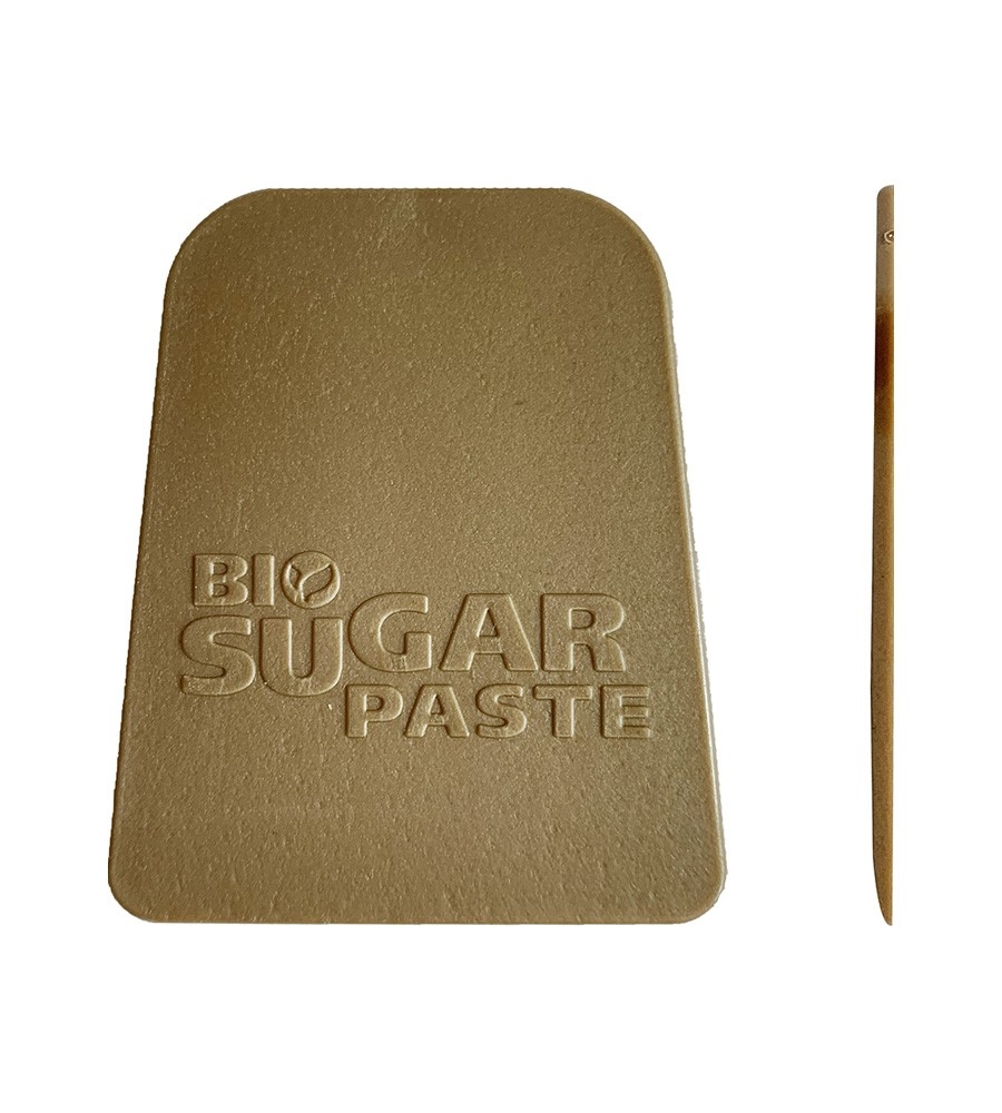 Pratica spatola per la stesura della Bio Sugar Paste, pasta di zucchero, in polietilene colore oro.